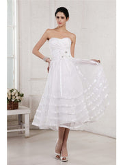 A-Line/Princess Strapless Sleeveless Hand-Made Flower Pleats Short Organza Taffeta Wedding Dresses