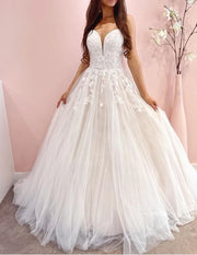 A-line Sleeveless Appliqued Tulle Wedding Dress