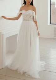 A Line Sweetheart Sweep Train Wedding Dress with Split Front - US 2 / UK 6 / EU 32