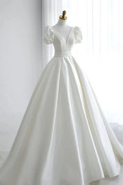 A Line V Neck White Wedding Dress with Short Sleeves - US 2 / UK 6 / EU 32