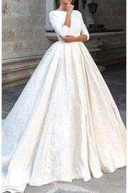 Backless Long Sleeve Ivory Wedding Dresses Modest 3/4 Sleeve Wedding Gowns - US 2 / UK 6 / EU 32