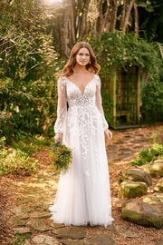 Backless Long Sleeves V Neck Tulle Beach Wedding Dresses