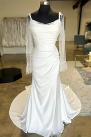Backless Ruched Wedding Dress with Detachable Sleeves