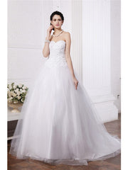Ball Gown Sweetheart Sleeveless Beading Applique Long Net Wedding Dresses