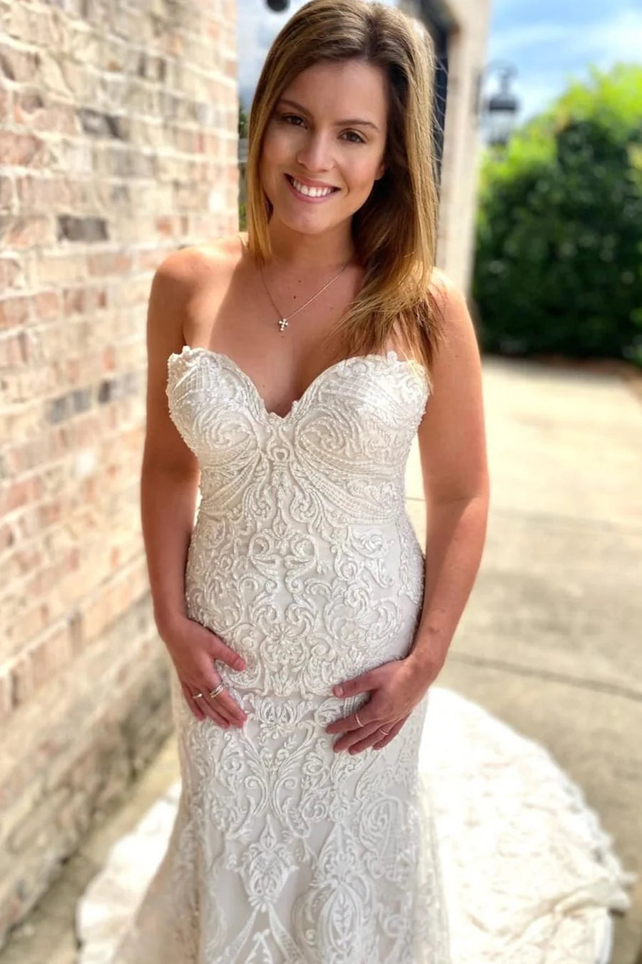 Embroidered Sweetheart Mermaid Long Wedding Dress