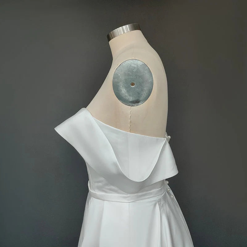 Glitter Off The Shoulder Ball Gown White Sweep Train Wedding Dress