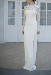 High-Neck Long Illusion Sleeve Mermaid Bridal Gown With Split Side