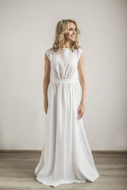 Linen Grecian Wedding Dress Elegant Boat Neck Bridal Dress Minimalist Wedding Gown Simple A -Line Wedding Dress Modest Bride Dress - US 2 / UK 6 / EU 32