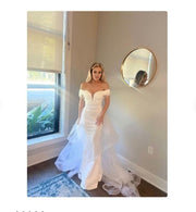 Mermaid Off Shoulder Appliques Wedding Reception Dress with