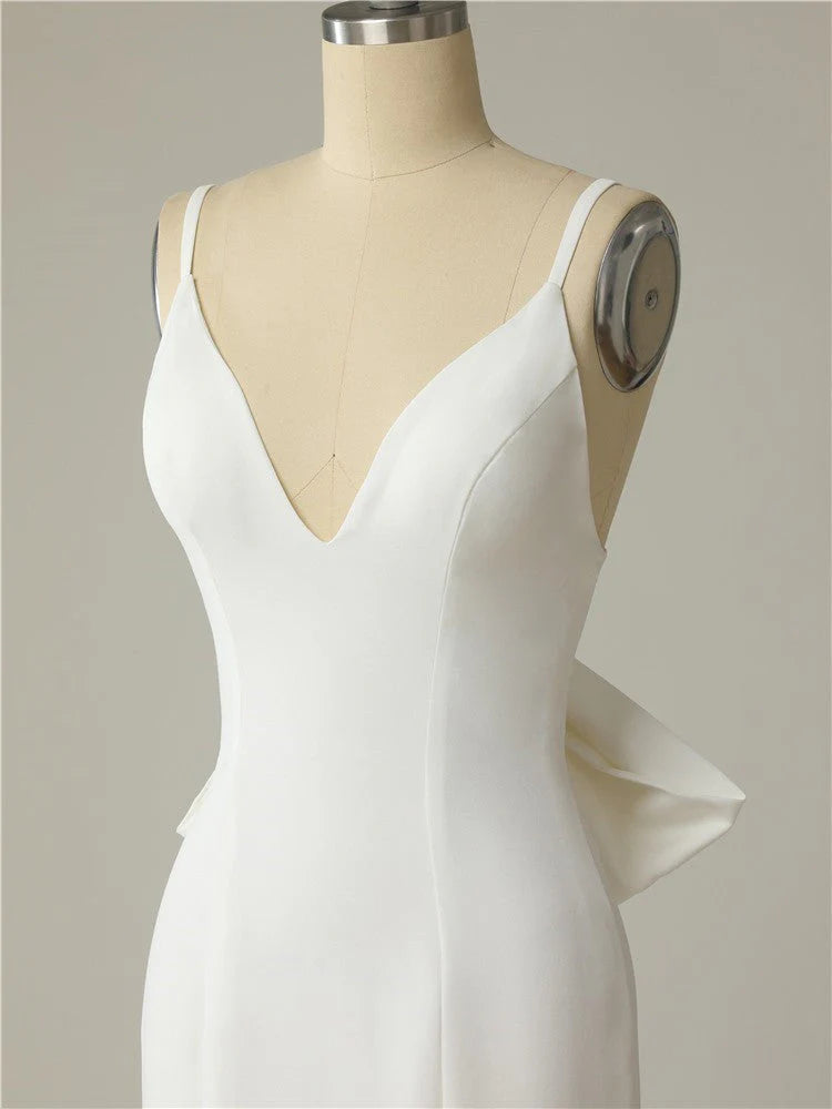 Princess Spaghetti Straps Backless V Neck Mermaid Wedding Dresses Bride Dresses - US 2 / UK 6 / EU 32
