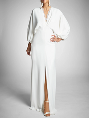 Sheath/Column Long Sleeves Plunging V Neck Floor-Length Wedding Dresses