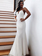 Sheath/Column Stretch Crepe Ruffles V-neck Sleeveless Chapel Train Wedding Dresses - US 2 / UK 6 / EU 32