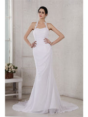 Trumpet/Mermaid Halter Sleeveless Beading Applique Long Chiffon Wedding Dresses - US 2 / UK 6 / EU 32