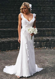 V-neck Chiffon Wedding Dress Summer Beach Ruffles Sleeveless Bridal Dresses - US 2 / UK 6 / EU 32