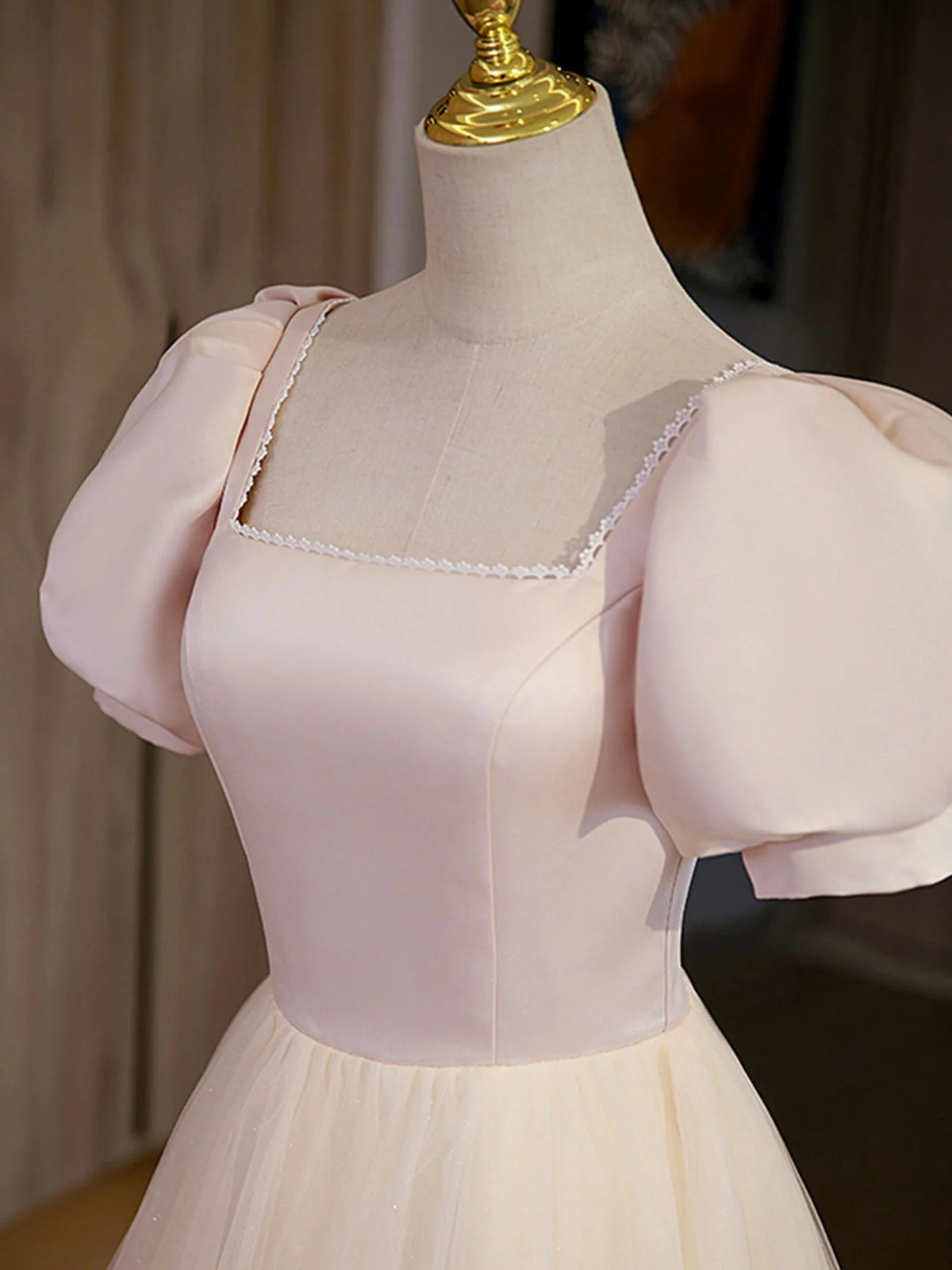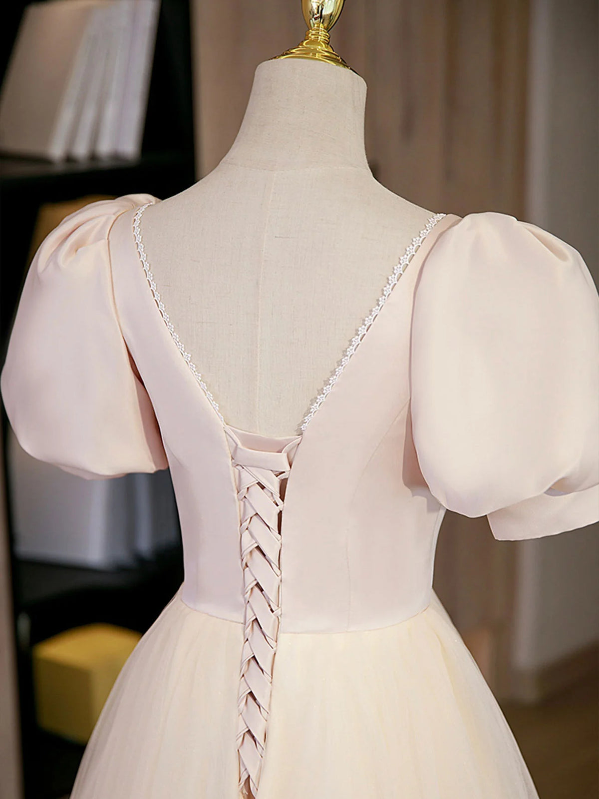 A Line Long Prom Dress Champagne Formal Graduation Dresses