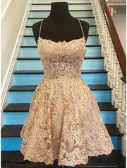 A-Line Short / Mini Homecoming Dresses Floral Dress Holiday Sleeveless Spaghetti Strap Lace with Appliques