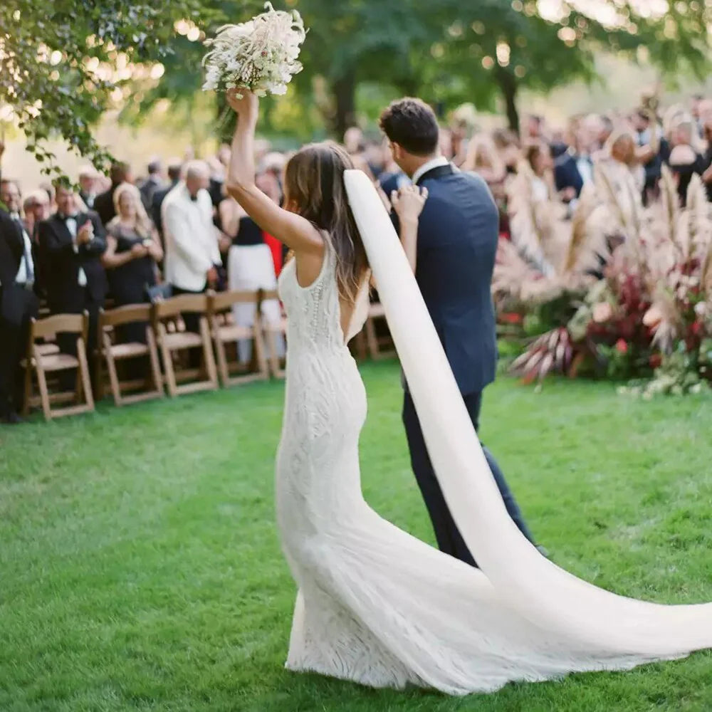 Dingji WeddingjiDress Mermaid V-Neck Backless Lace White Wedding Dresses With Court Train