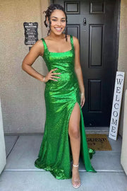Elegant mermaid sequin floor length dress with square neckline, sleeveless slit, zipper back, Prom Dresses - US 2 / UK 6 / EU 32