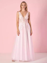 Fashionable and exquisite A-line V-neck and chiffon lace applique tight corset with zipper back Prom Dresses - US 2 / UK 6 / EU 32