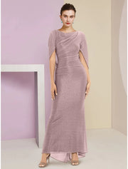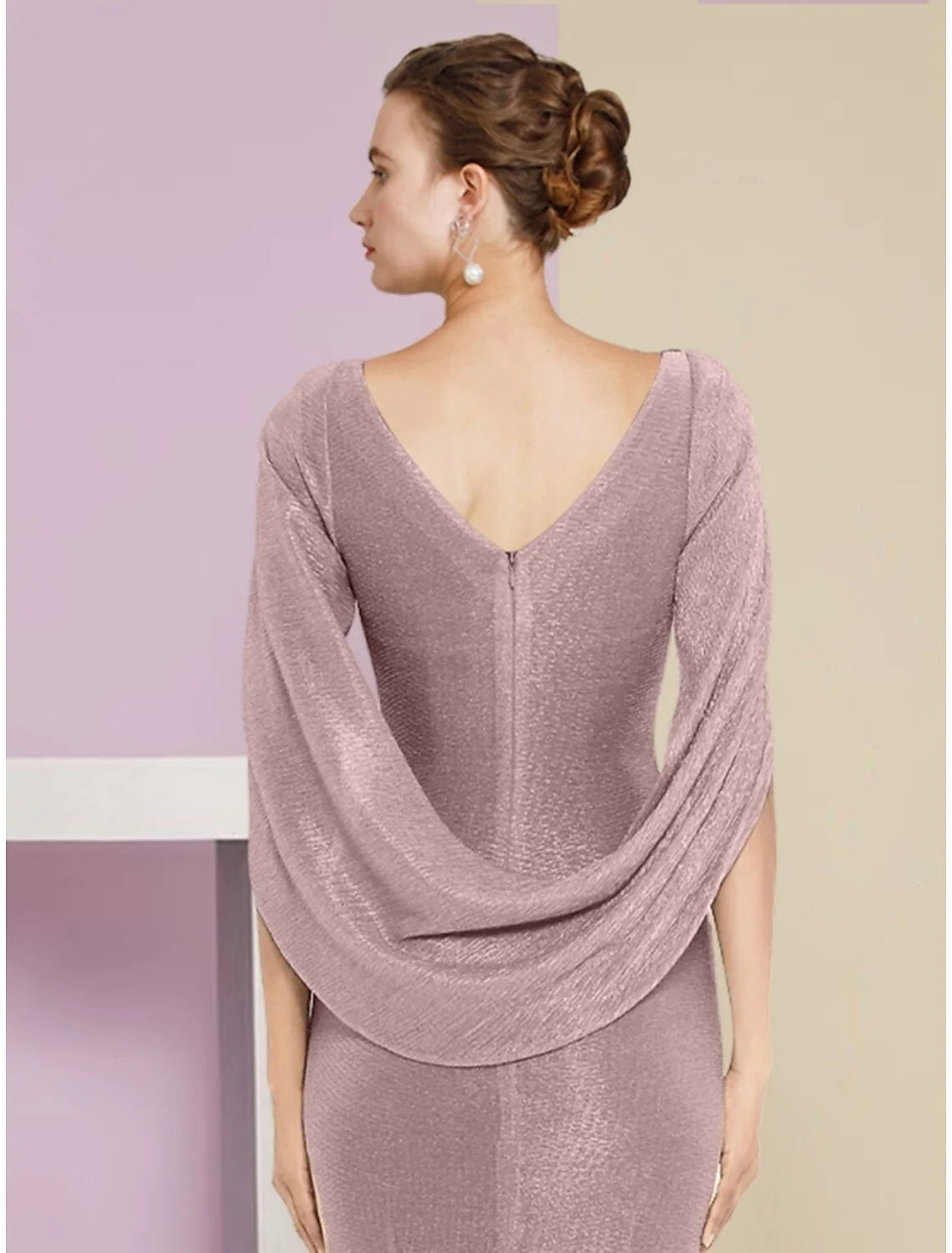 Mermaid / Trumpet Mother of the Bride Dress Wedding Guest Sparkle & Shine Elegant Scoop Neck Ankle Length Chiffon Half Sleeve with Sequin Ruching Solid