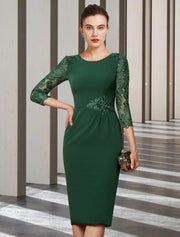 Sheath / Column Mother of the Bride Dress Elegant Jewel Neck Short / Mini Chiffon Lace Long Sleeve with Sash / Ribbon Applique - US 2 / UK 6 / EU 32