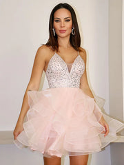 Spaghetti Straps Lace Sleeveless Applique Short Mini Homecoming Dresses