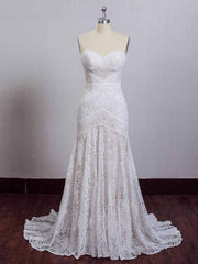 Unique Mermaid Off The Shoulder Ivory Lace Beach Wedding Dresses Bridal Gowns